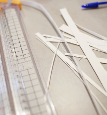 Les éléments sont modifiés : couleurs, tailles, formes, imprimés puis découpés.